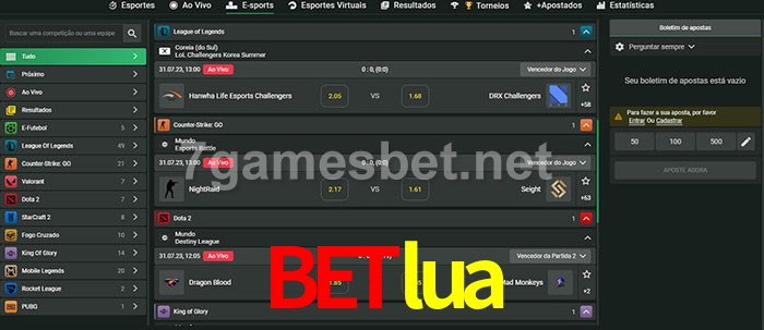 O betlua oferece uma grande seleção de opções de apostas em e-sports com probabilidades competitivas
